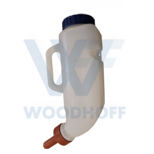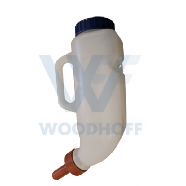 Пластикова пляшка для горизонтального випоювання телят з соскою (під 45 градусів).